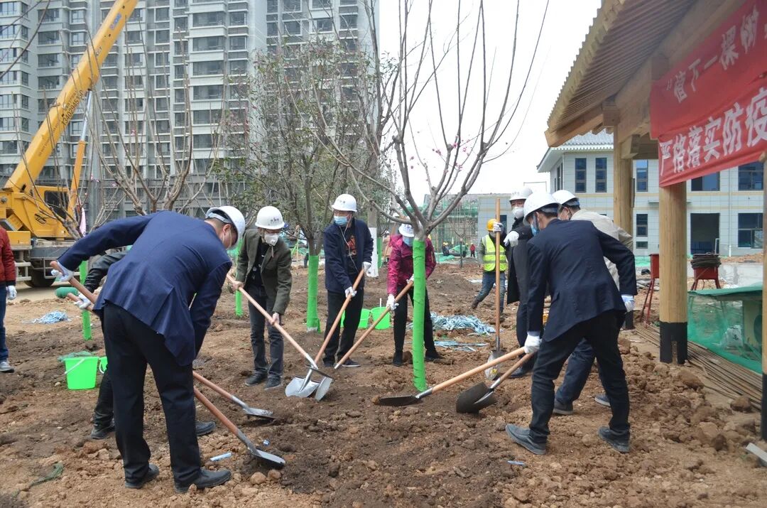 3.12 植树节 拥抱春天,播种绿色 阳春三月,草长莺飞,春风吹绿了枝头上的嫩芽。3月12日,正值第42个植树节,在传达环保理念的同时,也传递疫情下建筑人乐观不放弃的态度,用积极的心态去勇敢面对“疫”中生活。公司工会、团总支联合绿化公司开展“植下一棵树,收获万点绿” 的植树活动。 当天,陕建集团总经理张文琪,党委常委、工会主席刘小强、董事吴纯玺等一行领导莅临陕建翠园锦绣项目施工现场考察调研,陕建古建园林公司党总支书记、董事长姬脉贤,党总支副书记、总经理周明等人陪同。 现场,集团领导详细了解了该项目的施工和现场管理情况,要求项目人员全面落实疫情防控的各项措施。一手抓疫情防控,一手抓复工复产,确保项目各项既定目标的完成。在检查完项目的完成情况后,集团领导也参与了此次植树活动。 此次主要种植皂角树、红梅、独杆石楠等20余棵树木,大家热情高涨,分工协作,经过共同努力一棵棵树木矗立起来,为项目部再添一片新绿,让春天在手中“复工”。